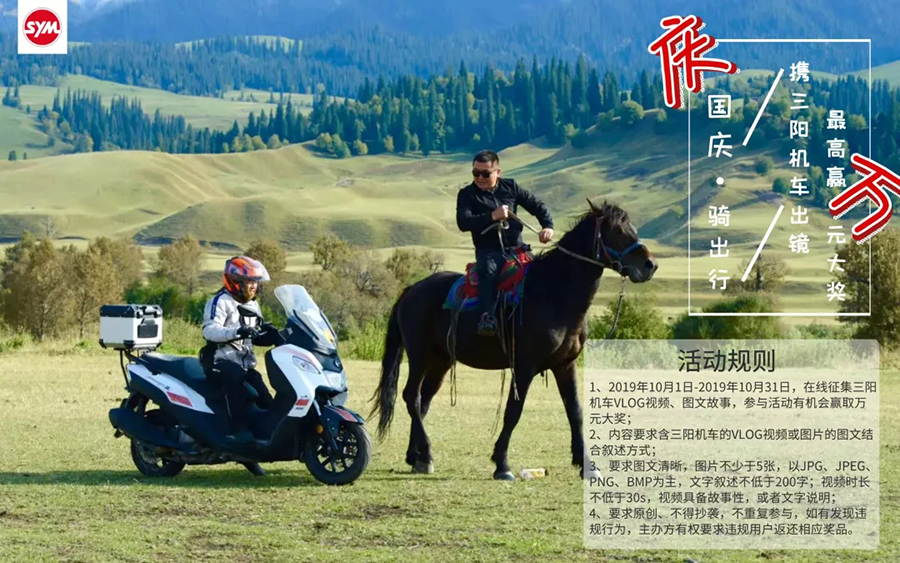 2019年10月1日-2019年10月31日,参与”庆国庆,骑出行“三阳摄影大赛有机会赢取最高万元大奖;